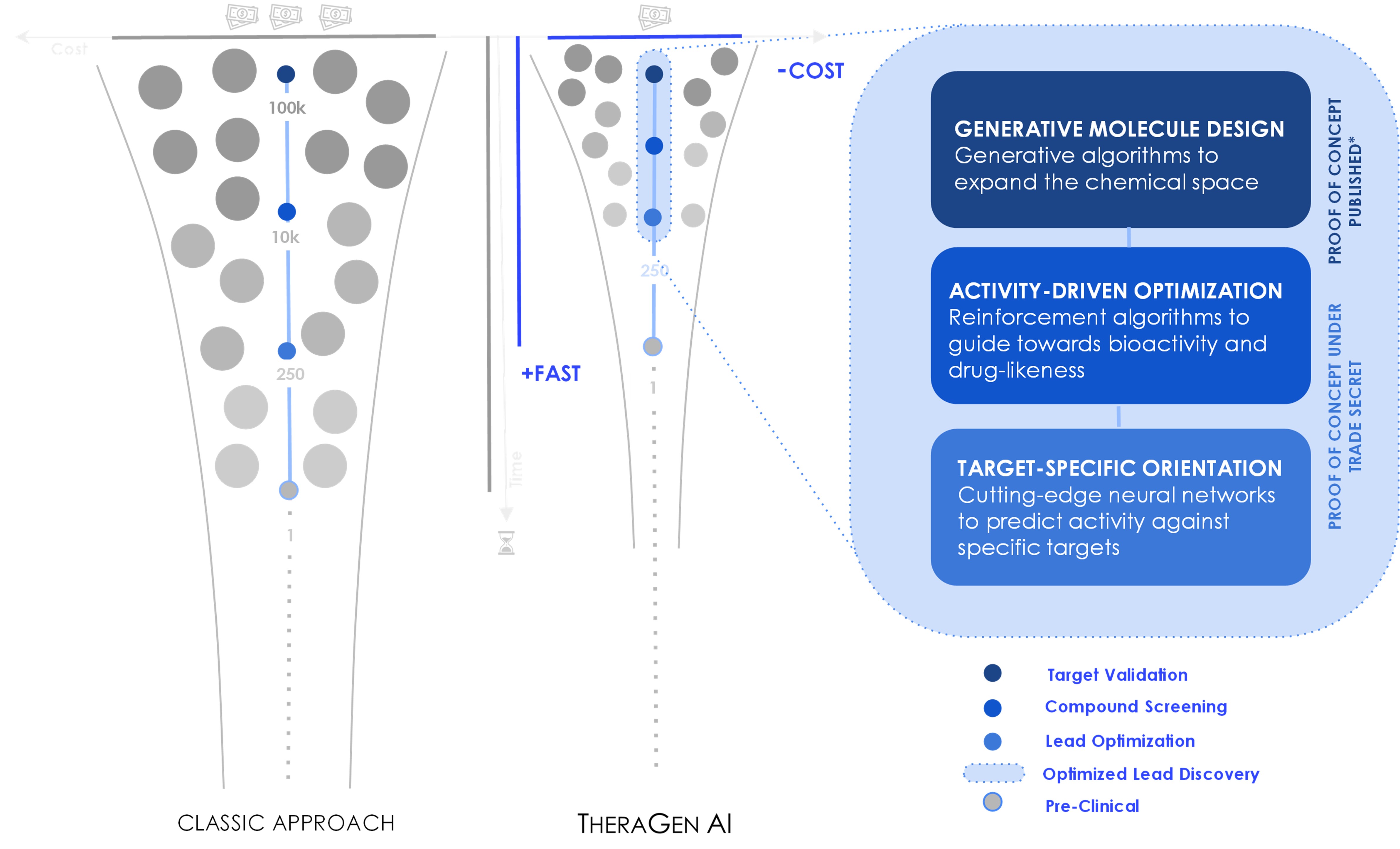 From more than 50,000 AI generated molecules to optimized lead compounds against molecular targets owned by TheraGen AI and ready for preclinical stage.